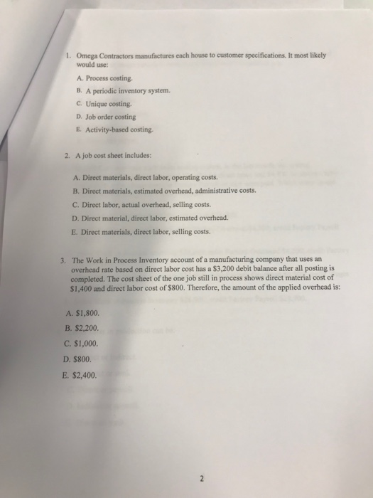 Solved 1 Omega Contractors Manufactures Each House To Chegg Com